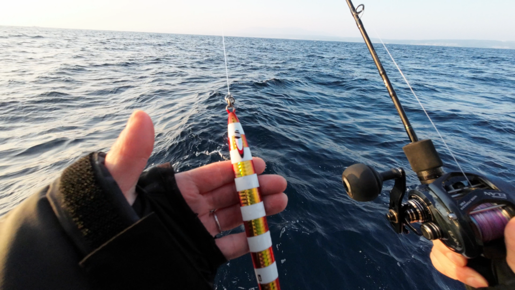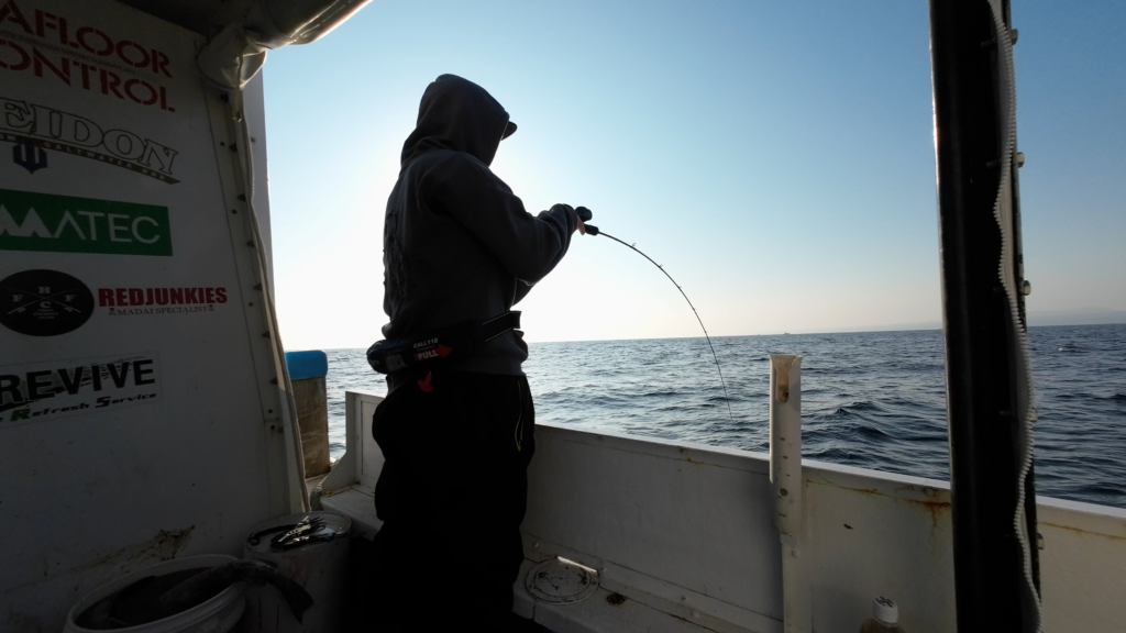 水深60m+やや波ありという状況だったので、250gはちょうど良い選択でした。