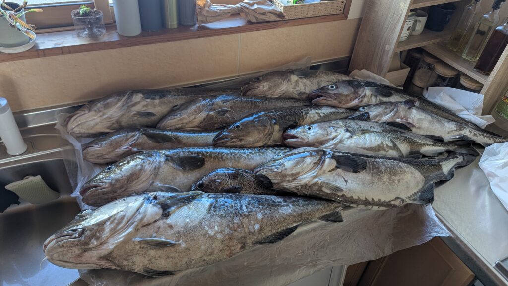 釣果ですが、サイズは60~80cmと上がってくるタラはどれも丸々していて良型揃い。